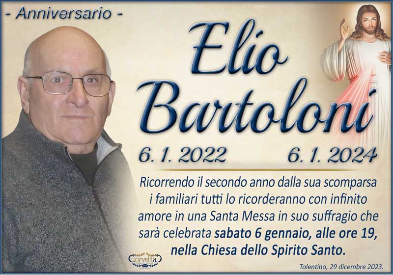 2° Anniversario: Elio Bartoloni 2° Anniversario: Elio Bartoloni 29 Dicembre 2023 Gianluca Corvatta Manifesti RecentiPasqualini SanteConti Graziella CastelliRingraziamento: Gina AlfeiFrapiselli Agnese “Fiorina” MattioliRingraziamento: Giorgio BrunoriAlfei Gina Gianluca Corvatta 29 Dicembre 2023 Categories:Bacheca Manifesti 0 Likes