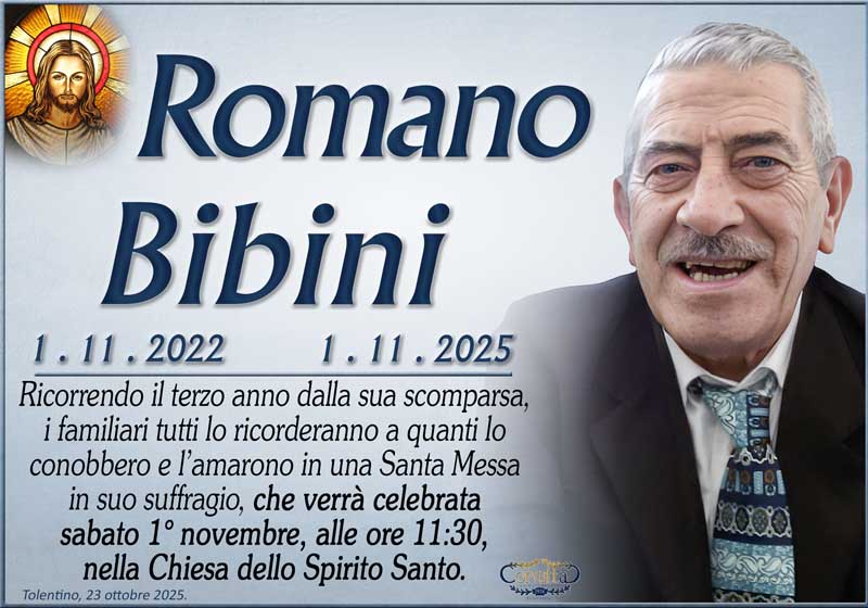 3° Anniversario: Romano Bibini 3° Anniversario: Romano Bibini 23 Ottobre 2025 Gianluca Corvatta Manifesti RecentiRingraziamento: Giorgio BrunoriAlfei GinaAnniversario: Giuseppina Mattioli GiulianiRingraziamento: Maria Grazia Conforti AntoliniAnniversario: Mario CimarelliConforti Maria Grazia Antolini Gianluca Corvatta 23 Ottobre 2025 Categories:Bacheca Manifesti 0 Likes