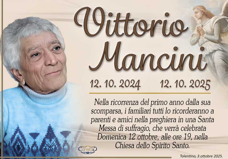 Anniversario: Vittorio Mancini Anniversario: Vittorio Mancini 3 Ottobre 2025 Gianluca Corvatta Manifesti RecentiRingraziamento: Giorgio BrunoriAlfei GinaAnniversario: Giuseppina Mattioli GiulianiRingraziamento: Maria Grazia Conforti AntoliniAnniversario: Mario CimarelliConforti Maria Grazia Antolini Gianluca Corvatta 3 Ottobre 2025 Categories:Bacheca Manifesti 0 Likes