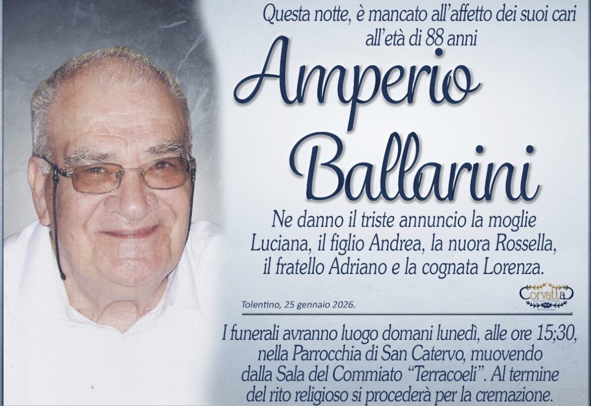 Ballarini Amperio Ballarini Amperio 25 Gennaio 2026 Gianluca Corvatta Manifesti RecentiAlfei GinaAnniversario: Giuseppina Mattioli GiulianiRingraziamento: Maria Grazia Conforti AntoliniAnniversario: Mario CimarelliConforti Maria Grazia AntoliniBrunori Giorgio Gianluca Corvatta 25 Gennaio 2026 Categories:Bacheca Manifesti 0 Likes