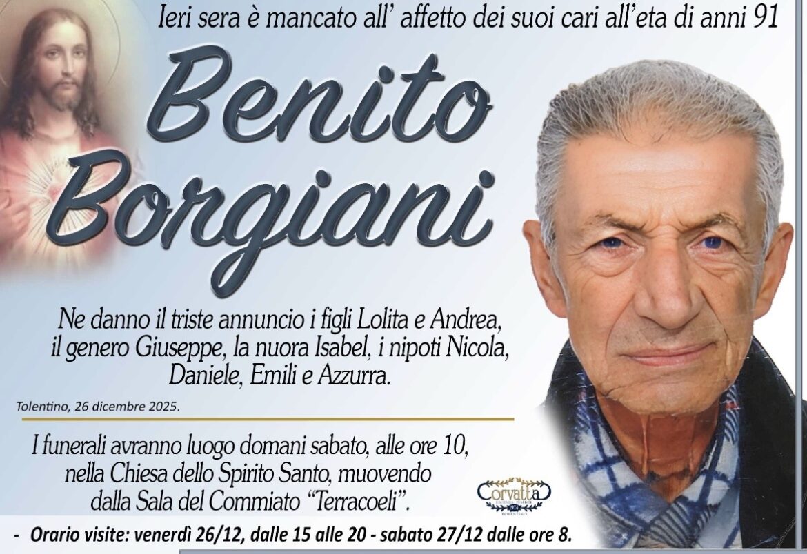 Borgiani Benito Borgiani Benito 26 Dicembre 2025 Gianluca Corvatta Manifesti RecentiRingraziamento: Giorgio BrunoriAlfei GinaAnniversario: Giuseppina Mattioli GiulianiRingraziamento: Maria Grazia Conforti AntoliniAnniversario: Mario CimarelliConforti Maria Grazia Antolini Gianluca Corvatta 26 Dicembre 2025 Categories:Bacheca Manifesti 0 Likes