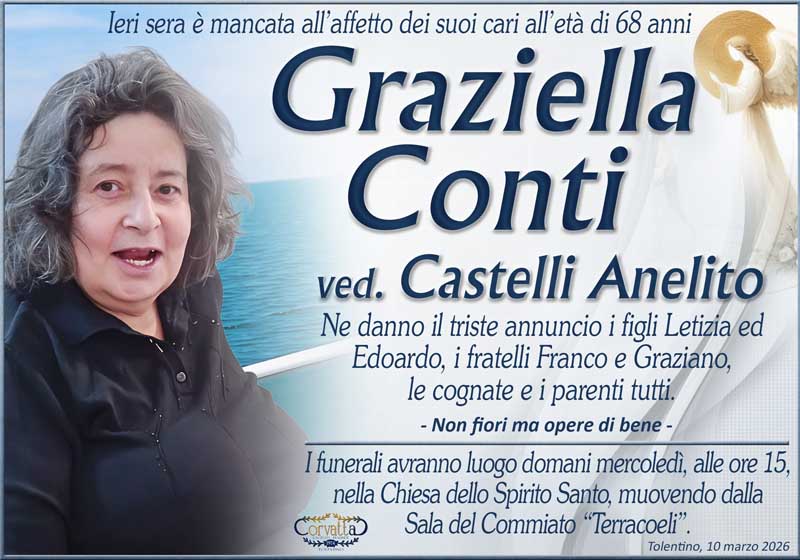 Conti Graziella Castelli Conti Graziella Castelli 10 Marzo 2026 Gianluca Corvatta Manifesti RecentiPasqualini SanteRingraziamento: Gina AlfeiFrapiselli Agnese โFiorinaโ MattioliRingraziamento: Giorgio BrunoriAlfei GinaAnniversario: Giuseppina Mattioli Giuliani Gianluca Corvatta 10 Marzo 2026 Categories:Bacheca Manifesti 0 Commenti 0 Likes