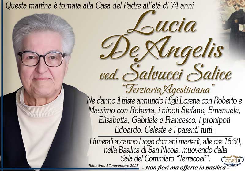 De Angelis Lucia Salvucci Salice De Angelis Lucia Salvucci Salice 17 Novembre 2025 Gianluca Corvatta Manifesti RecentiRingraziamento: Giorgio BrunoriAlfei GinaAnniversario: Giuseppina Mattioli GiulianiRingraziamento: Maria Grazia Conforti AntoliniAnniversario: Mario CimarelliConforti Maria Grazia Antolini Gianluca Corvatta 17 Novembre 2025 Categories:Bacheca Manifesti 0 Likes