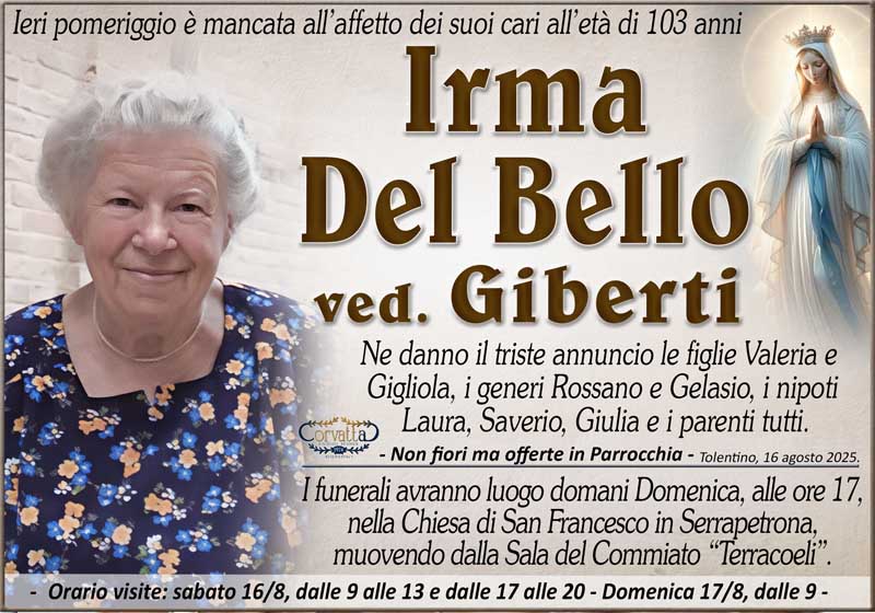 Del Bello Irma Giberti Del Bello Irma Giberti 16 Agosto 2025 Gianluca Corvatta Manifesti RecentiRingraziamento: Giorgio BrunoriAlfei GinaAnniversario: Giuseppina Mattioli GiulianiRingraziamento: Maria Grazia Conforti AntoliniAnniversario: Mario CimarelliConforti Maria Grazia Antolini Gianluca Corvatta 16 Agosto 2025 Categories:Bacheca Manifesti 0 Likes