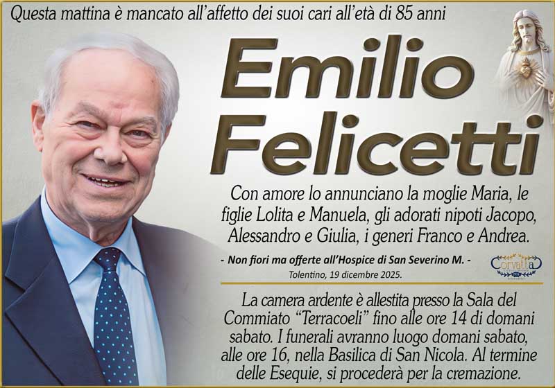 Felicetti Emilio Felicetti Emilio 19 Dicembre 2025 Gianluca Corvatta Manifesti RecentiRingraziamento: Giorgio BrunoriAlfei GinaAnniversario: Giuseppina Mattioli GiulianiRingraziamento: Maria Grazia Conforti AntoliniAnniversario: Mario CimarelliConforti Maria Grazia Antolini Gianluca Corvatta 19 Dicembre 2025 Categories:Bacheca Manifesti 0 Likes