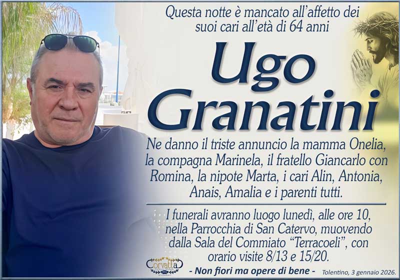 Granatini Ugo Granatini Ugo 3 Gennaio 2026 Gianluca Corvatta Manifesti RecentiRingraziamento: Giorgio BrunoriAlfei GinaAnniversario: Giuseppina Mattioli GiulianiRingraziamento: Maria Grazia Conforti AntoliniAnniversario: Mario CimarelliConforti Maria Grazia Antolini Gianluca Corvatta 3 Gennaio 2026 Categories:Bacheca Manifesti 0 Likes