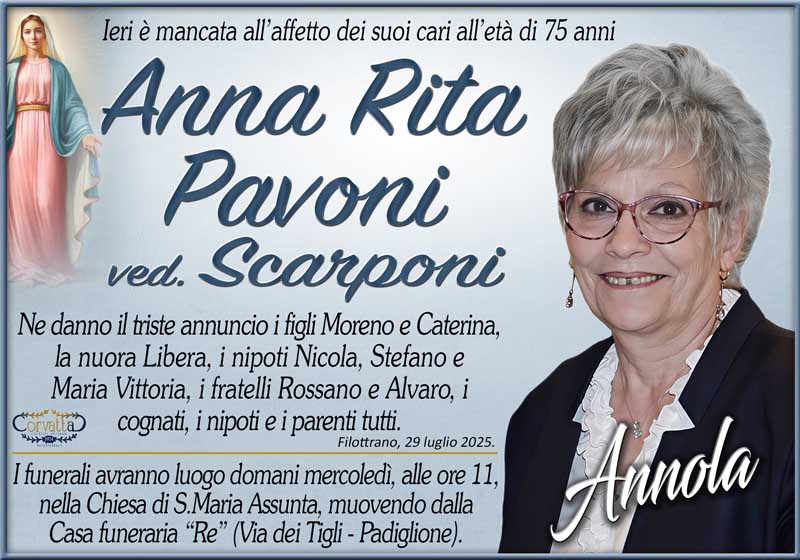 Pavoni Anna Rita (Annola) Scarponi Pavoni Anna Rita (Annola) Scarponi 29 Luglio 2025 Gianluca Corvatta Manifesti RecentiFrapiselli Agnese โFiorinaโ MattioliRingraziamento: Giorgio BrunoriAlfei GinaAnniversario: Giuseppina Mattioli GiulianiRingraziamento: Maria Grazia Conforti AntoliniAnniversario: Mario Cimarelli Gianluca Corvatta 29 Luglio 2025 Categories:Bacheca Manifesti 0 Likes