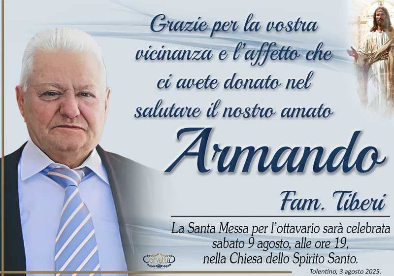Ringraziamento: Armando Tiberi Ringraziamento: Armando Tiberi 3 Agosto 2025 Gianluca Corvatta Manifesti RecentiFrapiselli Agnese โFiorinaโ MattioliRingraziamento: Giorgio BrunoriAlfei GinaAnniversario: Giuseppina Mattioli GiulianiRingraziamento: Maria Grazia Conforti AntoliniAnniversario: Mario Cimarelli Gianluca Corvatta 3 Agosto 2025 Categories:Bacheca Manifesti 0 Likes
