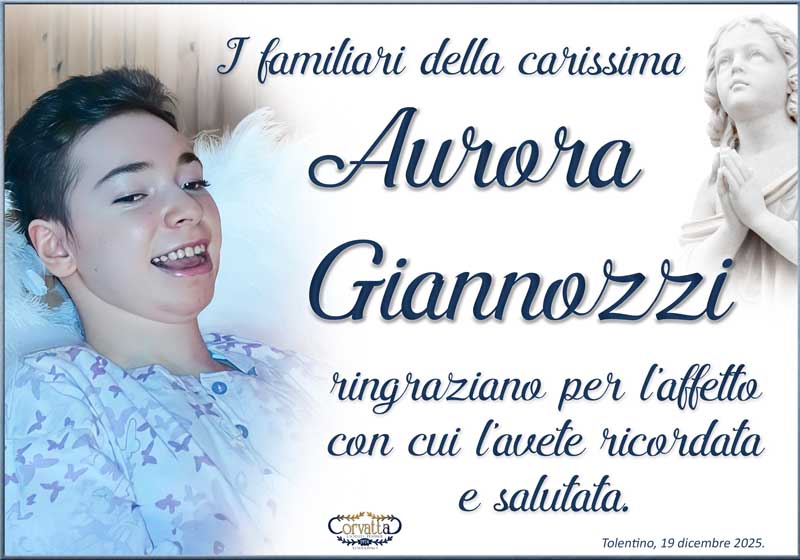 Ringraziamento: Aurora Giannozzi Ringraziamento: Aurora Giannozzi 22 Dicembre 2025 Gianluca Corvatta Manifesti RecentiRingraziamento: Giorgio BrunoriAlfei GinaAnniversario: Giuseppina Mattioli GiulianiRingraziamento: Maria Grazia Conforti AntoliniAnniversario: Mario CimarelliConforti Maria Grazia Antolini Gianluca Corvatta 22 Dicembre 2025 Categories:Bacheca Manifesti 0 Likes