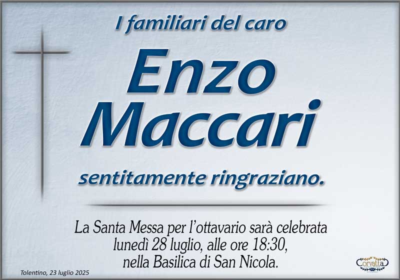 Ringraziamento: Enzo Maccari Ringraziamento: Enzo Maccari 24 Luglio 2025 Gianluca Corvatta Manifesti RecentiFrapiselli Agnese โFiorinaโ MattioliRingraziamento: Giorgio BrunoriAlfei GinaAnniversario: Giuseppina Mattioli GiulianiRingraziamento: Maria Grazia Conforti AntoliniAnniversario: Mario Cimarelli Gianluca Corvatta 24 Luglio 2025 Categories:Bacheca Manifesti 0 Likes