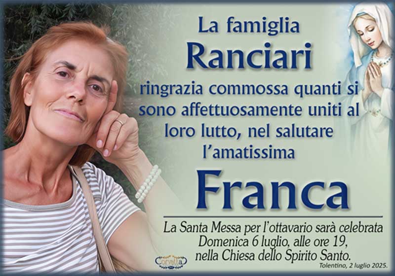 Ringraziamento: Franca Becerrica Ranciari Ringraziamento: Franca Becerrica Ranciari 2 Luglio 2025 Gianluca Corvatta Manifesti RecentiFrapiselli Agnese โFiorinaโ MattioliRingraziamento: Giorgio BrunoriAlfei GinaAnniversario: Giuseppina Mattioli GiulianiRingraziamento: Maria Grazia Conforti AntoliniAnniversario: Mario Cimarelli Gianluca Corvatta 2 Luglio 2025 Categories:Bacheca Manifesti 0 Likes