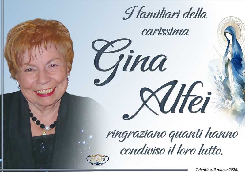 Ringraziamento: Gina Alfei Ringraziamento: Gina Alfei 9 Marzo 2026 Gianluca Corvatta Manifesti RecentiFrapiselli Agnese โFiorinaโ MattioliRingraziamento: Giorgio BrunoriAlfei GinaAnniversario: Giuseppina Mattioli GiulianiRingraziamento: Maria Grazia Conforti AntoliniAnniversario: Mario Cimarelli Gianluca Corvatta 9 Marzo 2026 Categories:Bacheca Manifesti 0 Commenti 0 Likes