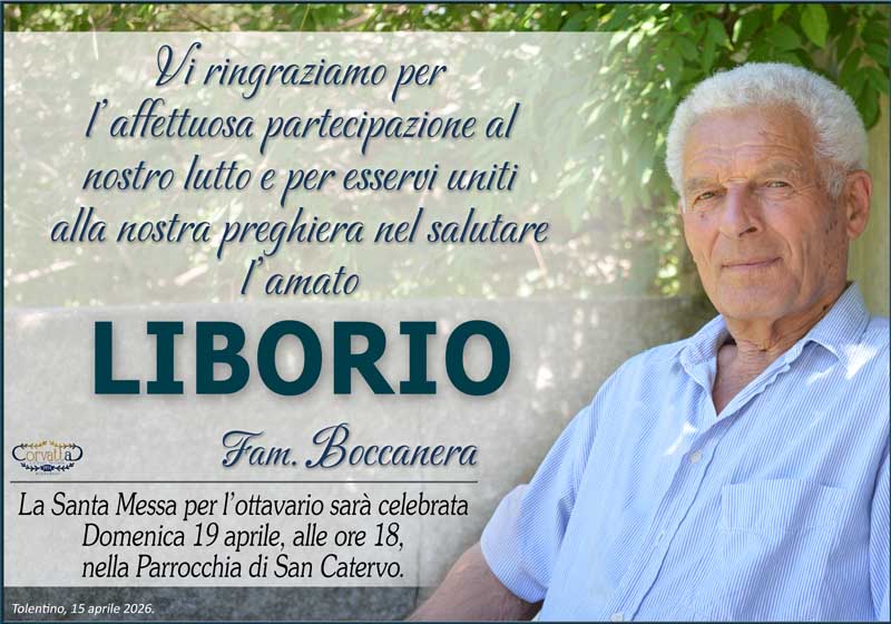 Ringraziamento: Liborio Boccanera Ringraziamento: Liborio Boccanera 15 Aprile 2026 Gianluca Corvatta Manifesti RecentiAlbucci GiuseppeFerrucci BrunaRingraziamento: Franco Buresta2° Anniversario: Maurizio QuacquariniMari Liuti Giuliana VannicolaBuresta Franco Gianluca Corvatta 15 Aprile 2026 Categories:Bacheca Manifesti 0 Commenti 0 Likes