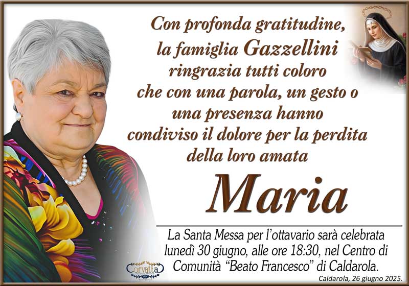 Ringraziamento: Maria Maraviglia Gazzellini Ringraziamento: Maria Maraviglia Gazzellini 26 Giugno 2025 Gianluca Corvatta Manifesti RecentiFrapiselli Agnese โFiorinaโ MattioliRingraziamento: Giorgio BrunoriAlfei GinaAnniversario: Giuseppina Mattioli GiulianiRingraziamento: Maria Grazia Conforti AntoliniAnniversario: Mario Cimarelli Gianluca Corvatta 26 Giugno 2025 Categories:Bacheca Manifesti 0 Likes